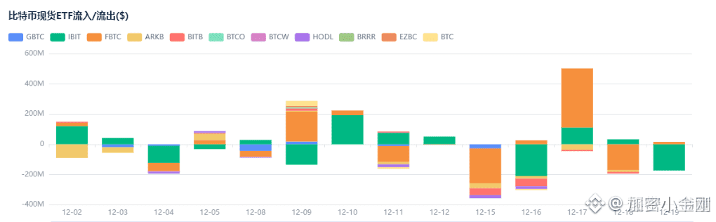 ● “越跌越买”的机构逻辑:他指出,当前阶段并非“牛市顶峰”,而是“机构积累期”。机构在高位持续买入,看的是未来数年的周期,而非短期价格。因此,尽管2025年比特币价格年线收跌,但现货比特币ETF却录得了约250亿美元的巨额净流入。