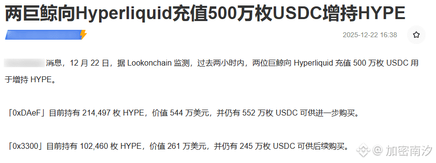 看到两张图,一张是巨鲸疯狂充值,一张是盘面暗流涌动。后台炸了,都在问:南汐,HYPE到底能不能冲?别急,我给你把肉嚼碎了,喂到你嘴边。