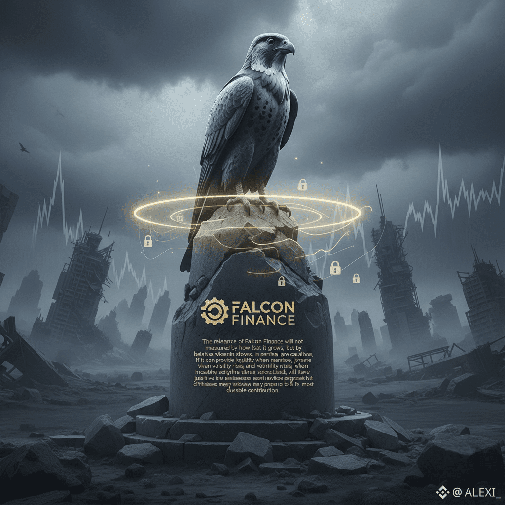 In the end,the relevance of Falcon Finance will not be measured by how fast it grows, but by how it behaves when growth slows. If it can provide liquidity when markets are cautious, preserve ownership when volatility rises, and maintain discipline when incentives elsewhere become loud, it will have justified its existence. In a space still learning the difference between motion and progress, that kind of steadiness may prove to be its most durable contribution.