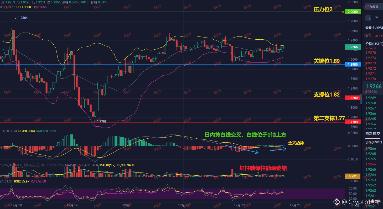 瑞神认为XRP很难站稳1.95!反弹看1.96-1.98区间,然后大概率掉头。一旦跌破1.89关键位,下一目标就是1.82,甚至1.77。逻辑很简单:消息面拉锯、技术面背离、资金面出逃,三座大山压着,涨上去难如登天!