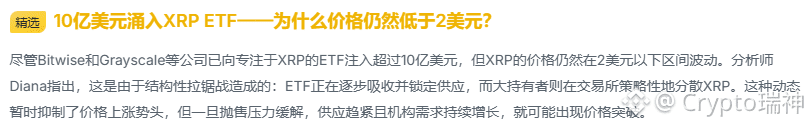 币友们,瑞神上线!$XRP 最近真是让人着急——ETF进来10亿美元,价格却连2美元都冲不过去!你是不是也觉得纳闷?别急,今天瑞神就给你扒开表面,看看底下到底藏着什么猫腻!