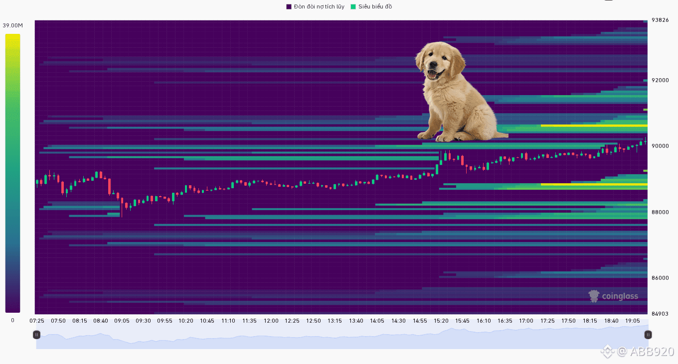 Hiện tại đang giữ vững trên 90k, tạo nền khá là vững chắc đấy. Nhưng khoan vội mừng nha. Nhìn vào cái heatmap kia kìa, trên mốc 92k-93k là cả một "đống" thanh khoản chờ sẵn rồi đó. Đó vừa là "nam châm" hút giá lên, vừa có thể là một vùng kháng cự cực kỳ khó chịu.