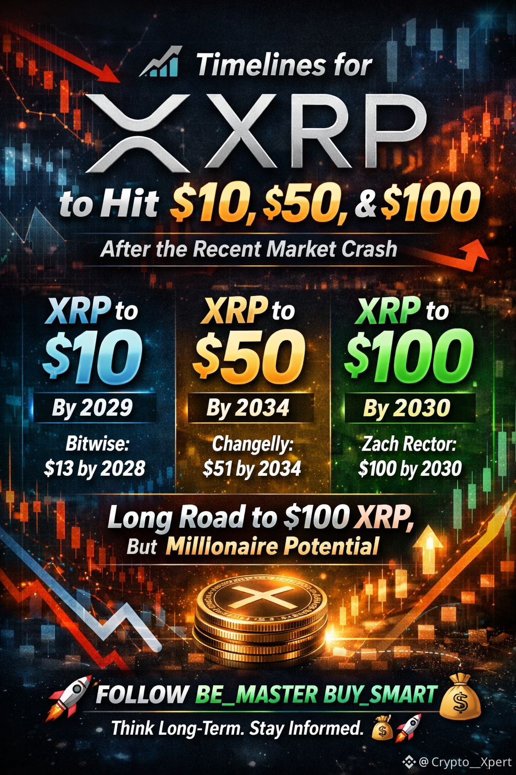 From current price levels, a $100 XRP would represent a 52x increase, helping explain why most forecasts place this milestone decades away. At that valuation, holders of 10,000 XRP would officially cross into millionaire status.