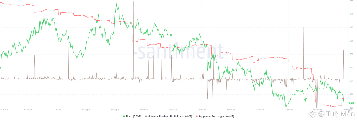 Như thể hiện trên biểu đồ bên dưới, chỉ số NPL đã tăng vọt trong phiên thứ Hai, phản ánh việc các nhà đầu tư, xét trên bình diện trung bình, đang tranh thủ hiện thực hóa lợi nhuận ở mức cao. Diễn biến này không chỉ cho thấy tâm lý chốt lời lan rộng mà còn góp phần khuếch đại thêm áp lực bán đối với AAVE trong ngắn hạn.