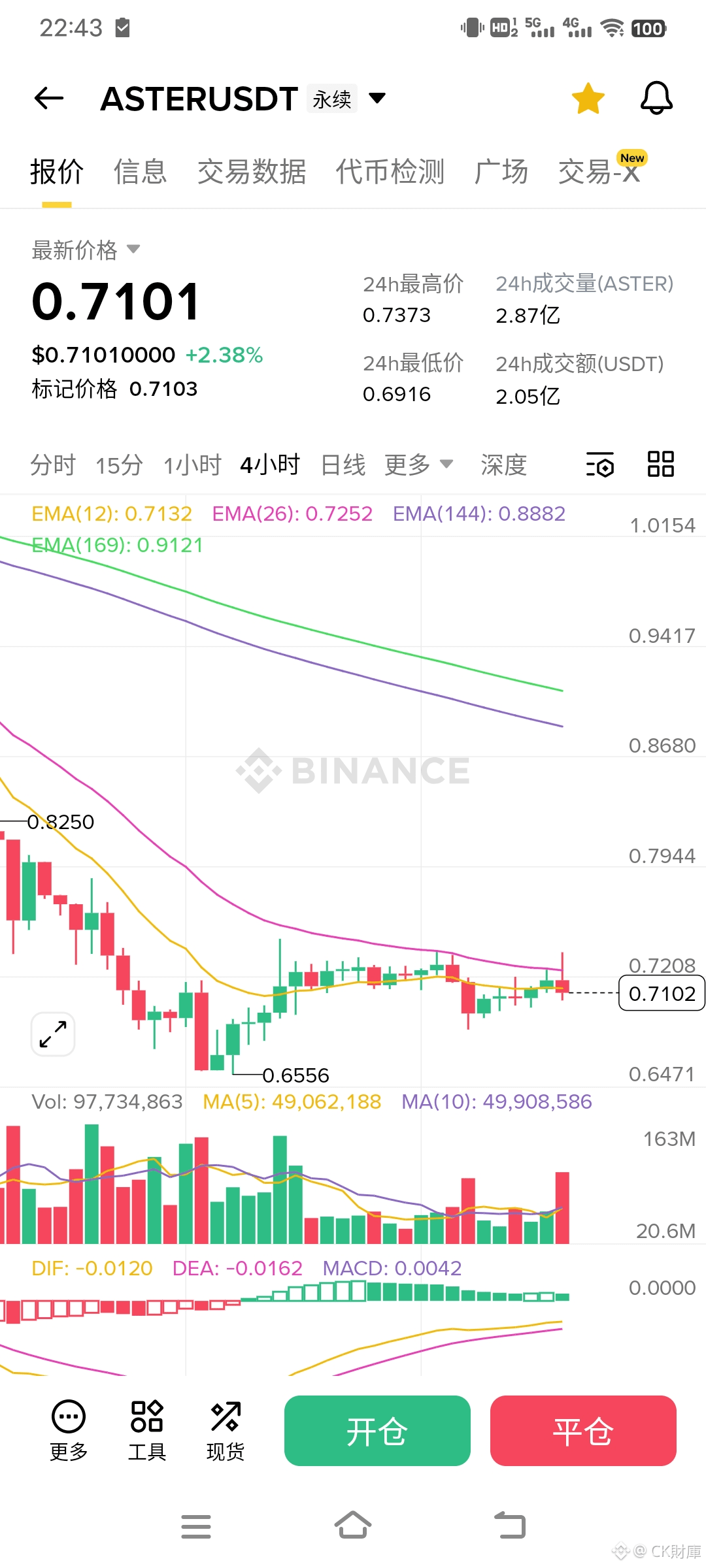 当前价格 $0.7111。价格自2025年9月的历史高点 $2.4360 已深度回调。作为由币安生态资本(YZi Labs)支持的去中心化永续合约交易所,其价格正处于市场消化早期高估值后,对其技术叙事和市场份额进行重估的阶段。