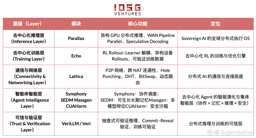 在底层,Echo 构建于 Parallax(低带宽环境下的异构推理)与轻量化分布式训练组件(如 VERL)之上,依赖 LoRA 降低跨节点同步成本,使强化学习可在全球异构网络上稳定运行。