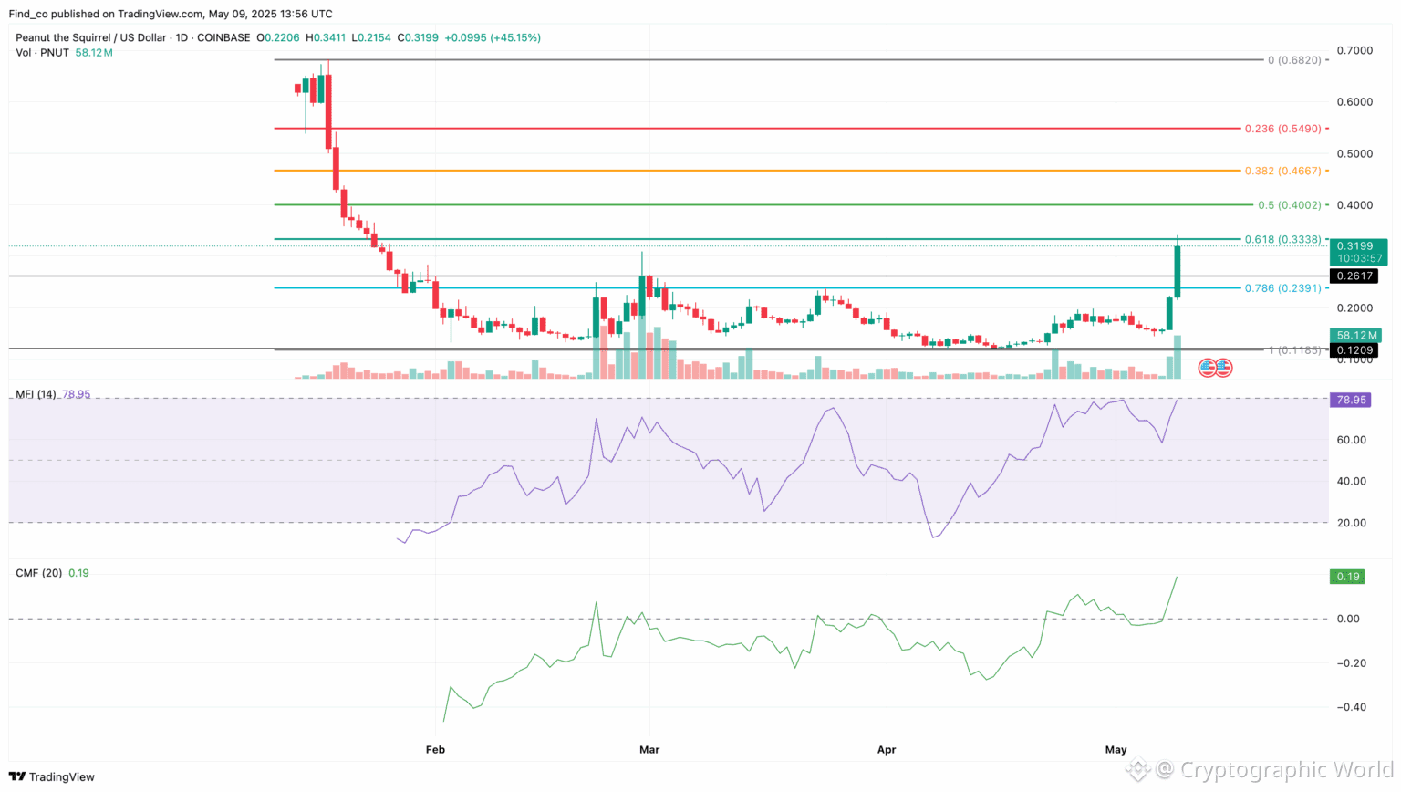 Since February, the Solana memecoin traded between $0.12 and $0.26. But after the recent price increase, PNUT surged past that ceiling.