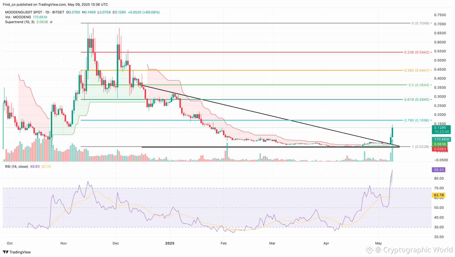 However, within the last seven days, MOODENG’s price has increased by over 200%, reaching $0.13.