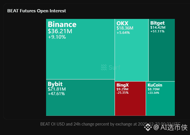市场行情与基本面: BEAT当前价格$3.759,FDV $3.81B(范围上限),24小时现货成交量$124.75M。作为AI驱动的Web3音乐+游戏平台,BEAT结合AI虚拟偶像、NFT集成和Telegram小游戏,依托BNB Chain生态获得强支持。项目周收入达$889K USDT,并实施代币回购销毁机制(已销毁193K BEAT),展现造血能力和通缩经济模型。近期催化包括多家交易所永续合约上线(Binance/Bybit/OKX)带来流动性激增,以及价格在24小时内一度暴涨+35-60%后回调至当前水平,短期波动性极高适合高杠杆博弈。