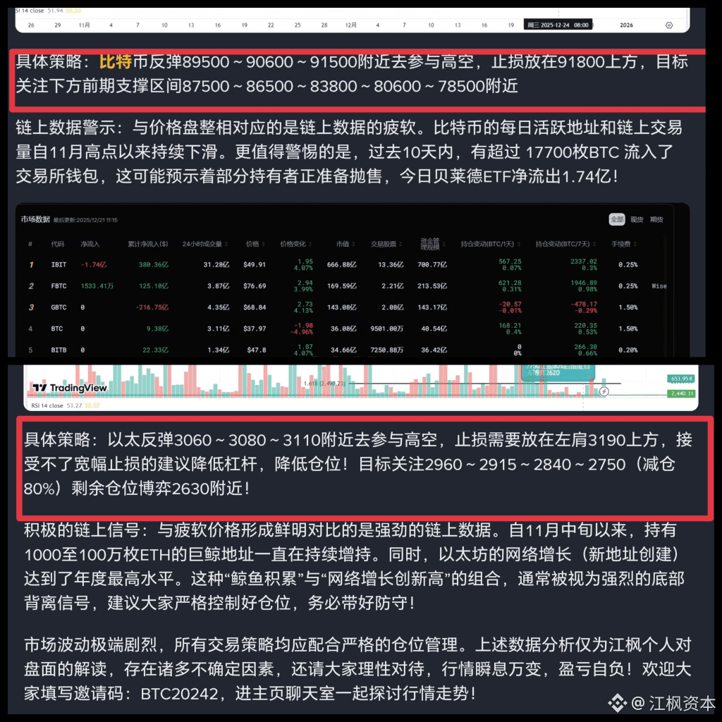 这个圣诞周,比特币并非“掉队”,而是在进行一场至关重要的“结构检验”。多头在84000美元上方的顽强防守值得尊重,但若无法在短期内(1-2周)攻克94000美元阻力,久盘必跌的风险将急剧上升。相比之下,以太坊凭借自身基本面的改善和技术面的突破,短期动能更优。交易者应放弃对“圣诞行情”的简单幻想,转而紧盯上述关键价位的攻防,让市场自己走出方向。