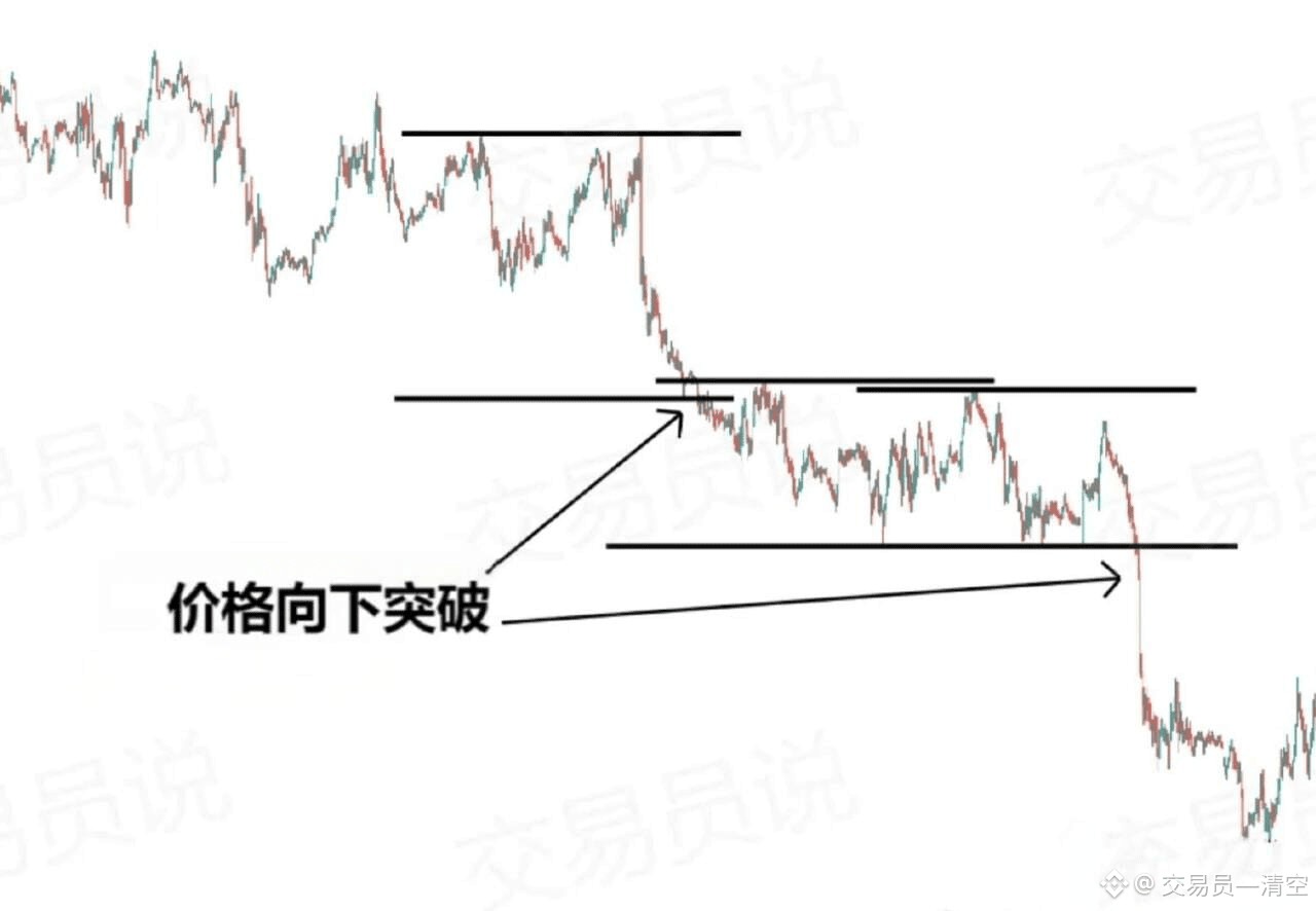 看空突破(空头突破,也常被称为“向下破位”):逻辑相反,先确认市场存在空头动能(即下跌趋势),再在价格跌破前一个低点时进场做空。