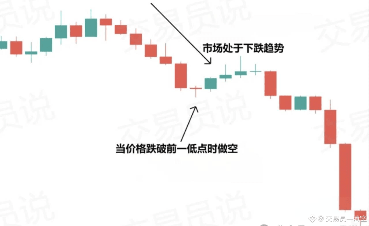 当价格跌破前一个低点时,即可进场做空,目标是捕捉行情后续的向下延伸空间。