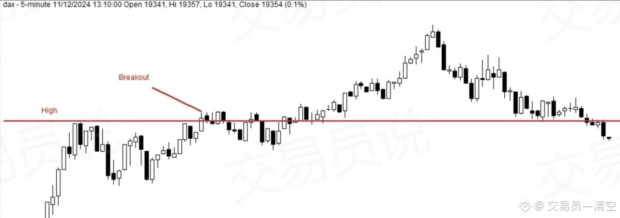 每个交易日开始时,交易者需先标记前一交易日的最高价和最低价(可在当日日期切换时完成,也可在早盘开盘前完成),随后只需观察价格的突破方向即可。