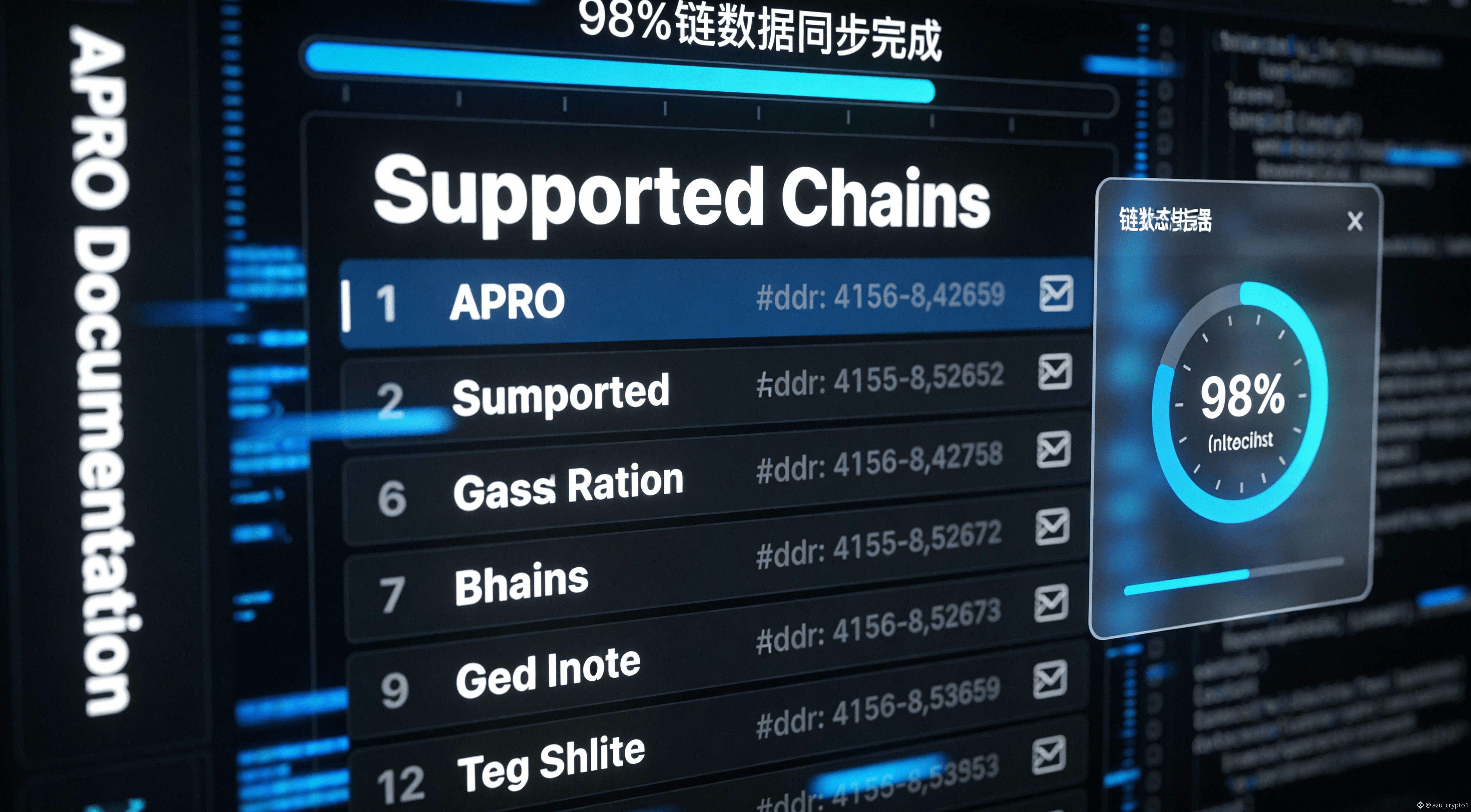 然后是“在哪些链”这件事,你别自己编一串主流链名凑数,最好的证据其实就在 APRO 的合约文档页面里。它的 Price Feed Contract 页面直接把 Supported Chains 摆出来,并且每条链下面给到具体交易对、偏离阈值、心跳频率、合约地址;这一类信息是最硬的“简历附件”,因为读者可以直接拿地址去链上查。 你写多链覆盖时,完全可以把“支持 40+ 链”落地成“价格喂价合约已在这些链给出可核验入口”,并顺手提醒读者:别看宣传页,去看合约表格,那里才是简历的身份证。