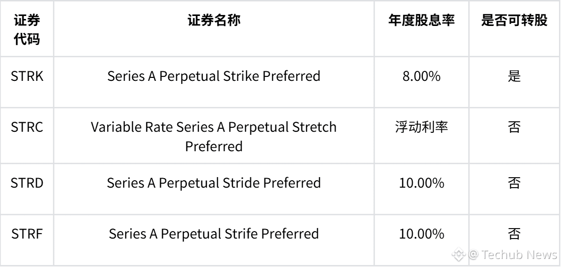 2025 年,微策略在资本工具创新方面迈出重要一步,推出了一系列永续优先股,用于吸引不同风险偏好的投资者。