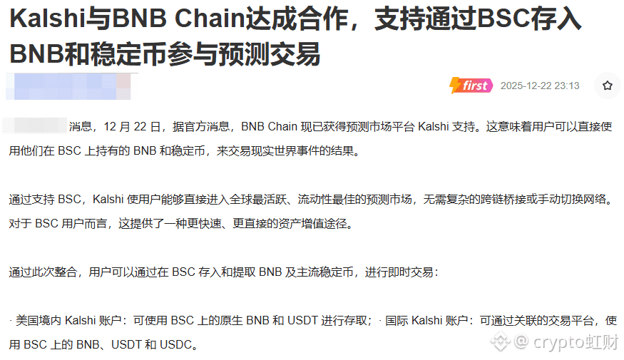 消息显示,BNB Chain获得了预测平台的支持,用户能用BSC上的BNB和稳定币直接玩预测市场。