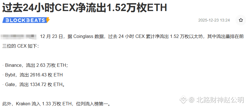 各位币友,我是赵公明。$ETH 这行情,是不是看得你昏昏欲睡?价格像被抽了骨头,软趴趴的。但刚刚有个数据很诡异:交易所一天被提走1.5万枚ETH!这到底是主力偷偷抄底,还是暴风雨前最后的寂静?关注赵公明,我带你拨开迷雾。