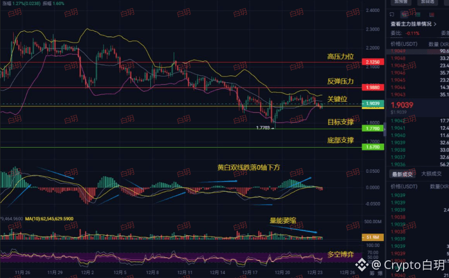 位置尴尬:当前价格在1.9039美金附近磨蹭,这个位置很关键,图表上直接标着“关键位”。它就相当于一个临时的“裁判席”,多空双方在这暂时休息。