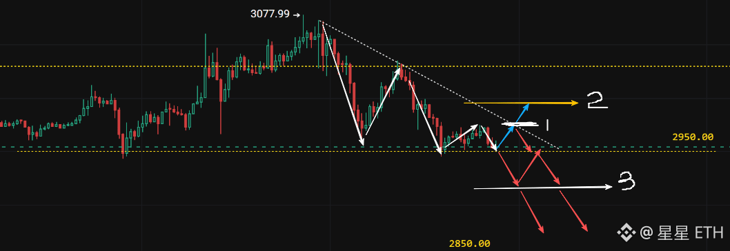 再看盘面,如果多单按蓝色路线到达1的位置【2980附近】这里空一点,如果到达2的位置【3000附近】这里可以加仓空。如果盘面走红色路线,直接跌破2950,去3的位置【2910附近】接个短多,2890附近损,2950止盈。