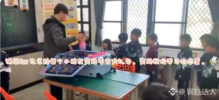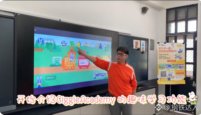 第二節進入上色時間,彩色蠟筆在紙上跳舞,孩子們的畫作瞬間變得五彩繽紛。大家體驗#GiggleAcademy 免費教育英文App!螢幕上出現可愛的兔子角色「Max」小朋友跟著拼單字、點選互動,玩得不亦樂乎,有人興奮地大喊,有人專注地滑動螢幕,笑聲此起彼落,有人開心得跳起了舞蹈! 課程尾聲,全班舉起自己親手畫的 Max 作品,開心大合照!兩位老師站在兩側, GiggleAcademy Max社區送愛心到臺灣教學活動,記錄下這溫馨一刻。每位小朋友都收到滿滿的點心大禮包:魔芋爽、奧利奧、韓國小雞麵、香港桃酥、跳跳糖,還有一瓶蔓越莓汁!孩子們邊吃邊笑,甜甜的幸福味瀰漫整個教室。這堂課不僅是體驗了咯咯學院免費教育App,更收穫了滿滿的愛與快樂!
