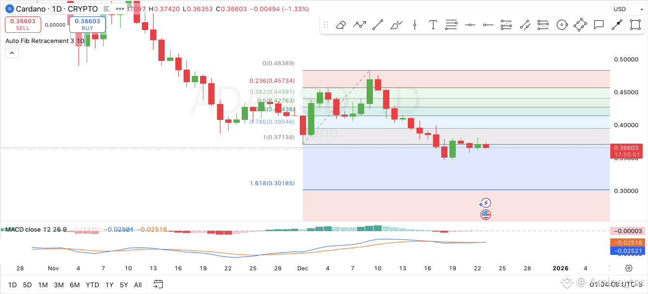 يتم تداول ADA قرب مستوى 0.36 مع تذبذب محدود ضمن نطاق ضيق