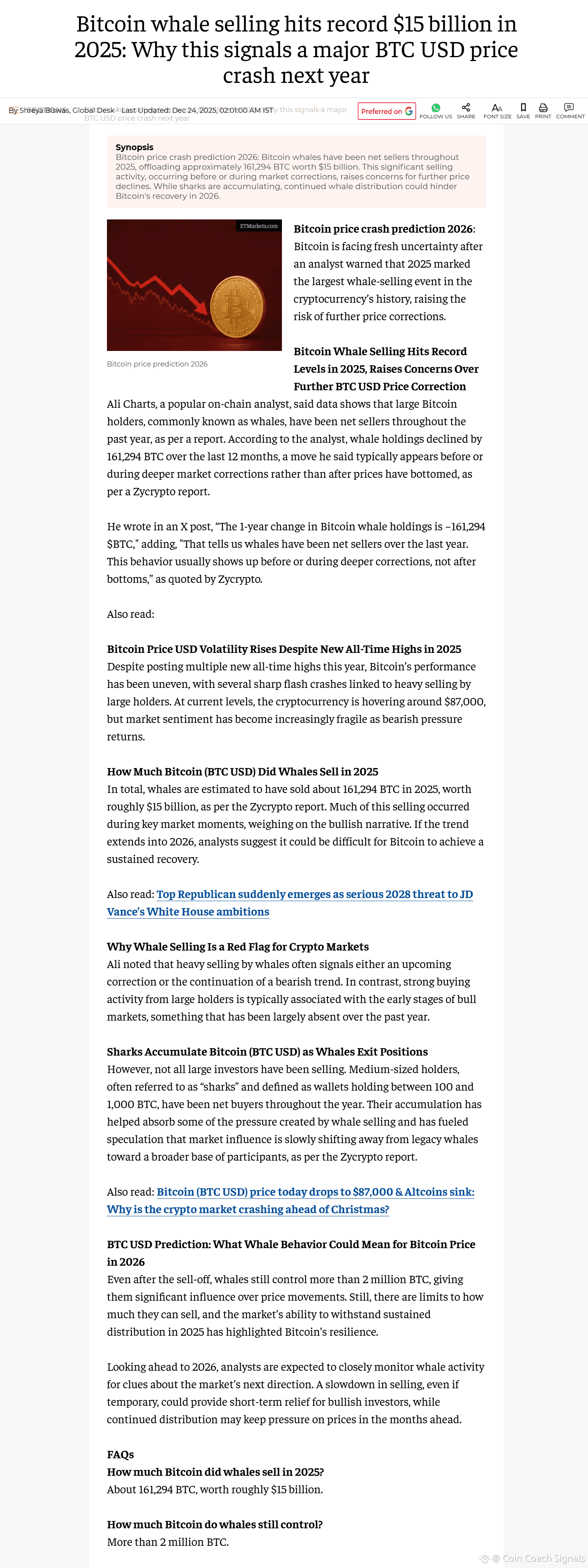 Still, it’s hard to ignore the signal. Record whale selling during a year many expected to be strong is not something to brush off. It suggests that some of the smartest capital in the market is playing defense.