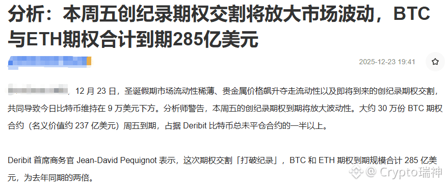 这两天机构增持的消息确实炸了:贝莱德拿了4534枚,BitMine买了6.7万枚,易理华旗下机构更是杠杆猛冲4.6万枚…看起来是“巨鲸集结号”对吧?但你要冷静:机构的钱是“长线布局”,不是来给你拉盘的!他们可能分批建仓几个月,期间价格该跌照样跌。更别忘了——本周五有创纪录的285亿美元期权到期,这可是悬在头顶的“核弹级利空”!