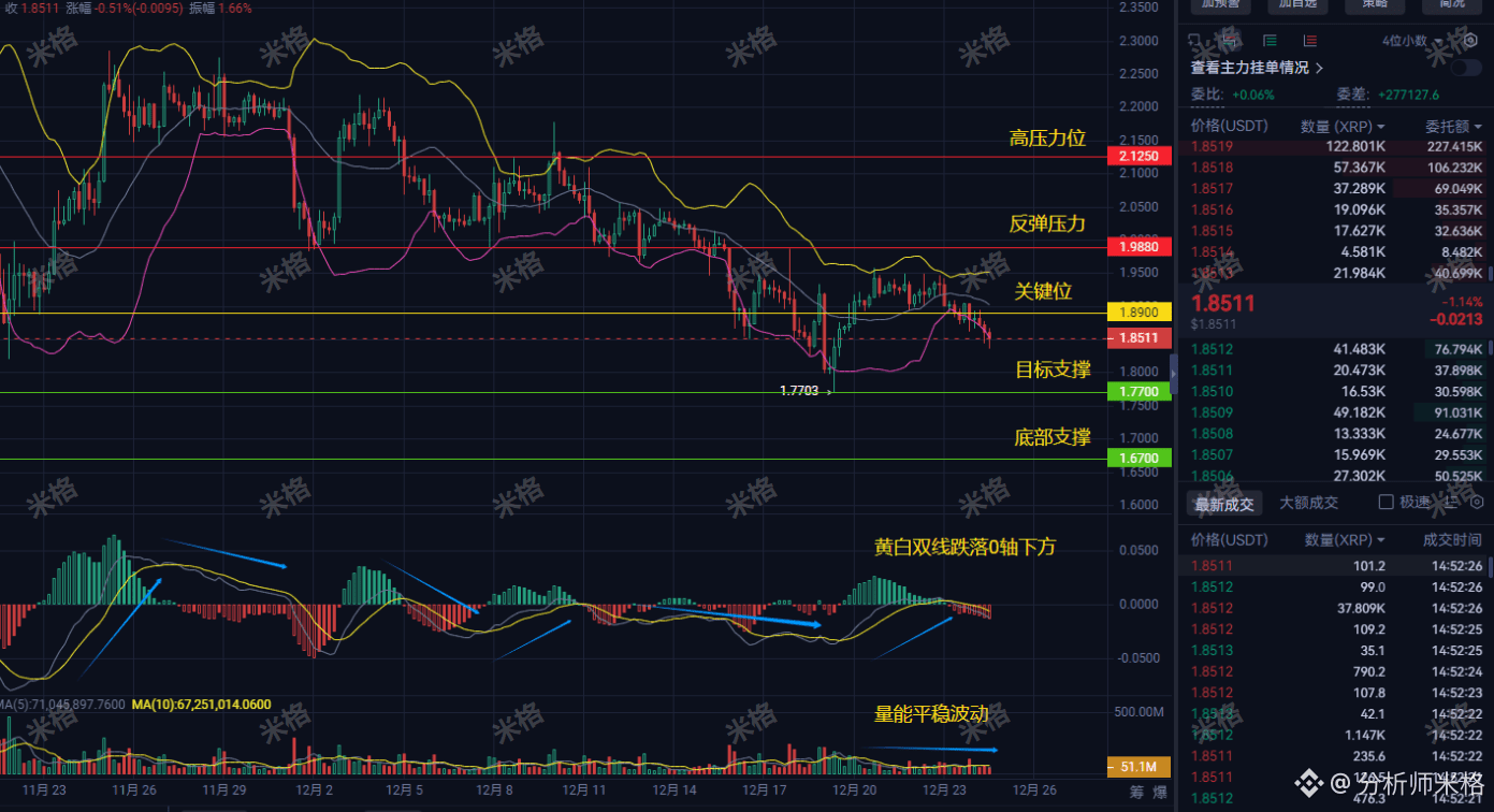 这明确告诉你:短期空头绝对主导,别逆势硬扛。上方1.988和2.125就像两座大山,没巨量根本过不去。
