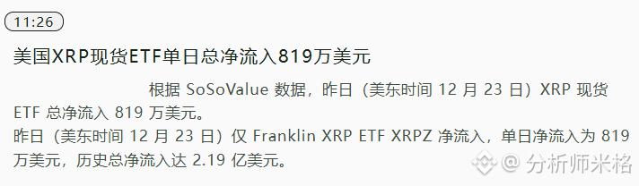 昨天美国XRP现货ETF净流入819万美元,单独看好像是利好。