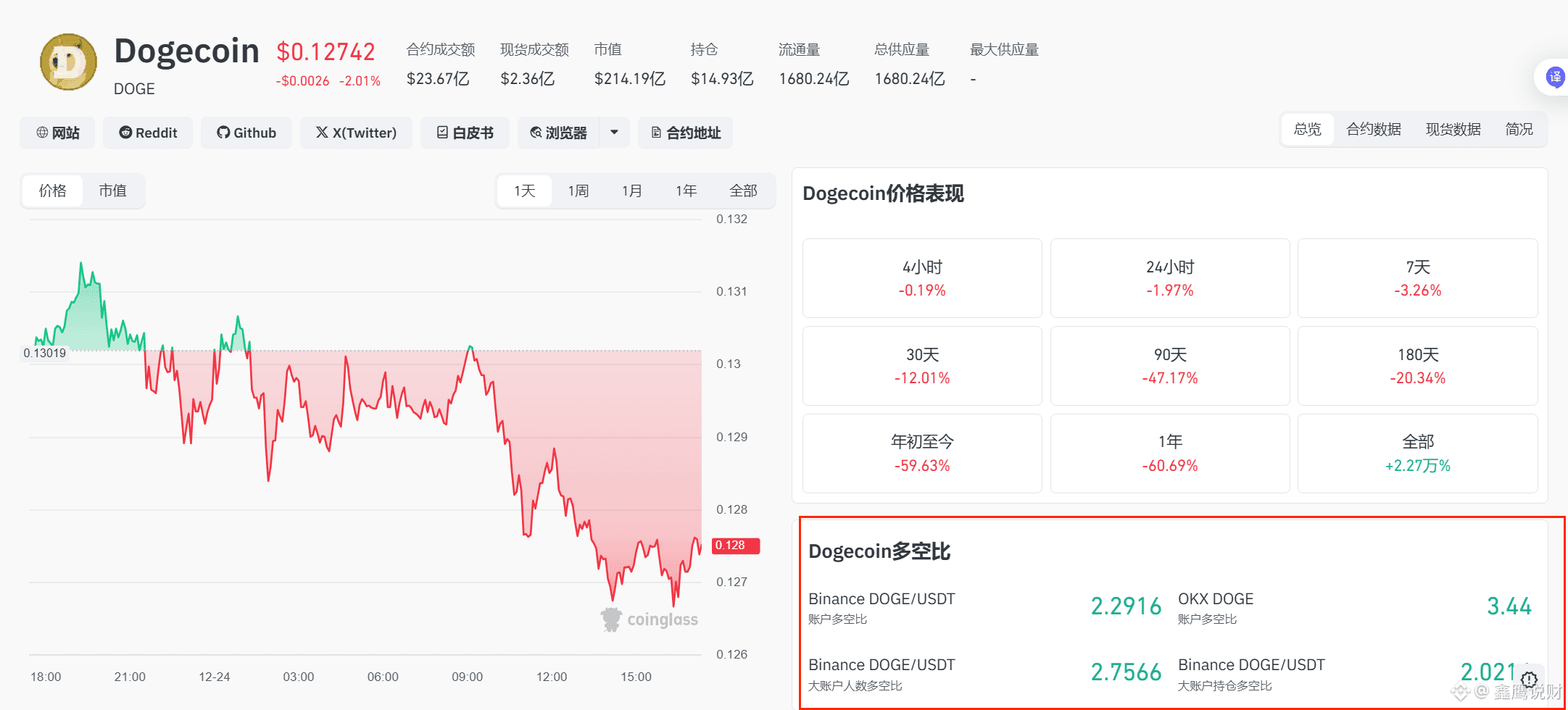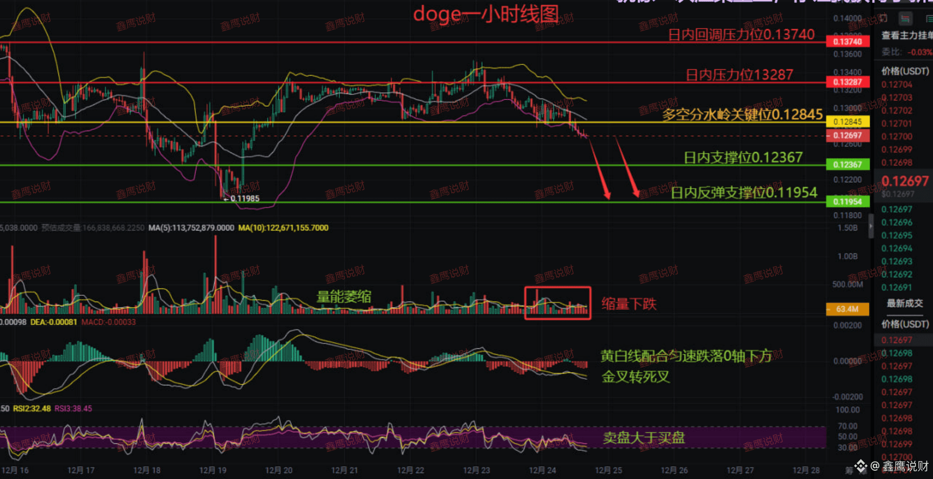 DOGE已进入技术性空头节奏,关键位0.12845已成为多空分界线。记住:在下跌通道中,每一次反弹都是给你重新上车空单的机会。关注鑫鹰,一起用冷静的策略应对波动,守候下一轮起涨点!#加密市场观察