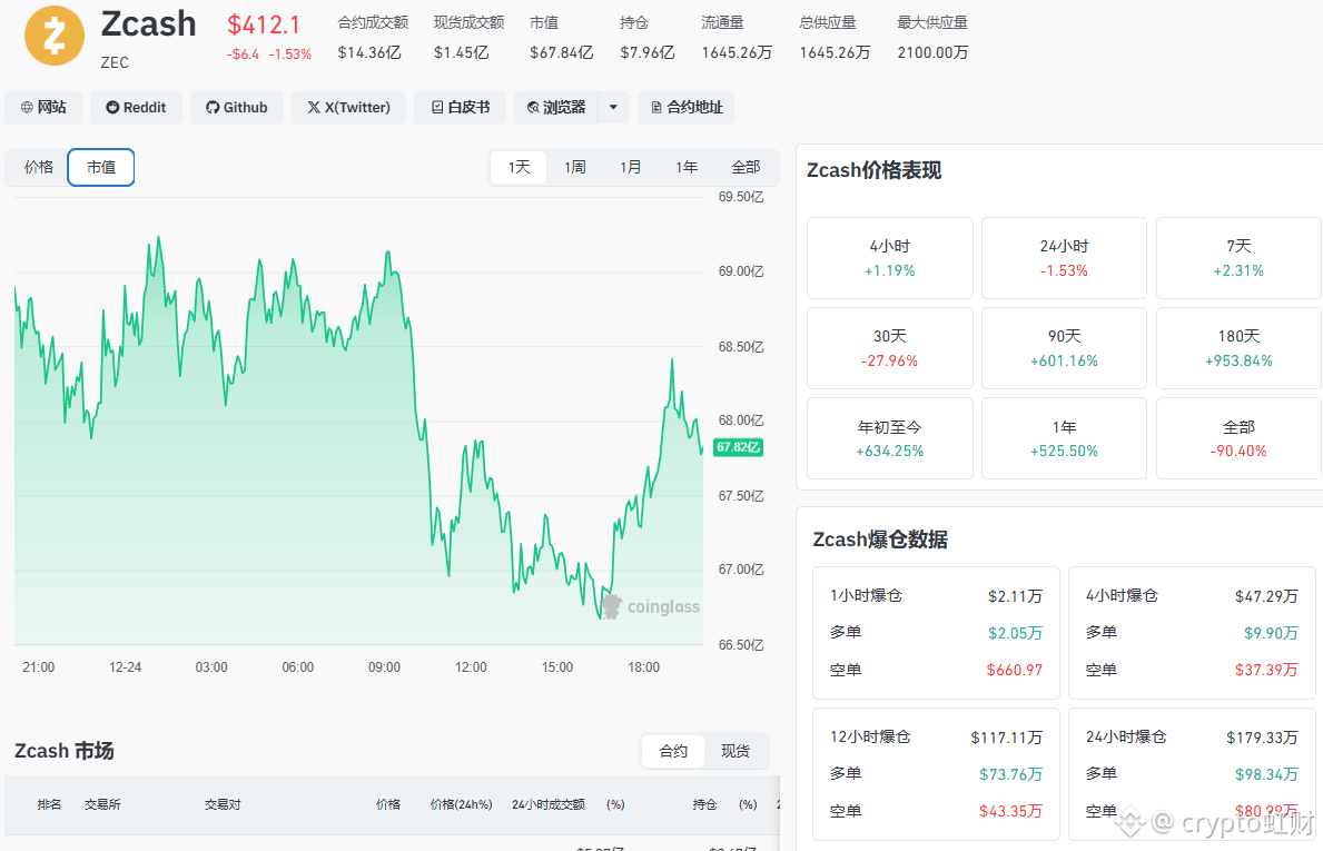 兄弟们,我是虹财。打开ZEC的行情,一个数字扎心了30天跌幅近28%,价格卡在412美金的关键位置。现在所有人都在问:它是要绝地反击,还是继续跌入深渊?