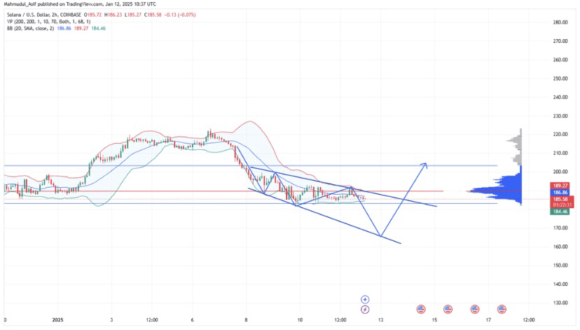 Jeśli zobaczymy tę monetę w przedziale czasowym 2-godzinnym, zobaczymy, że obecnie formuje się zwyżkowa flaga. Dla lepszego wzrostu świece tej monety powinny trochę spaść. Ponieważ wolumen ma ogromny opór, aby wyciągnąć te świece w dół. Obliczenia Bollingera pozostają neutralne. Jeśli jednak spojrzymy na przedział czasowy 30-minutowy, obliczenia Bollingera również potwierdzają ruch w dół, tworząc dobrą flagę zwyżkową. BTC.D i inne rynki również potwierdzają tę analizę. Dlatego jesteśmy praktycznie pewni, że rynek ten wkrótce się załamie.