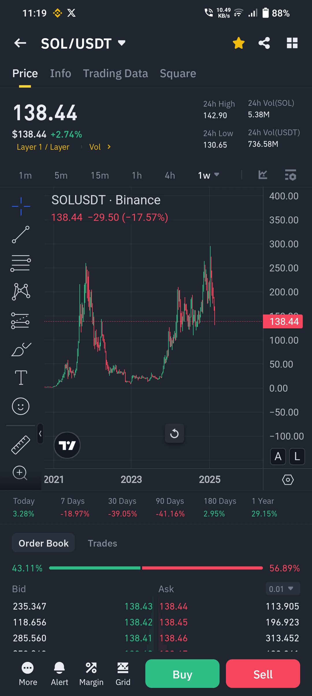 Aktualna cena: $138.44 (-17.57% w ciągu 24h)