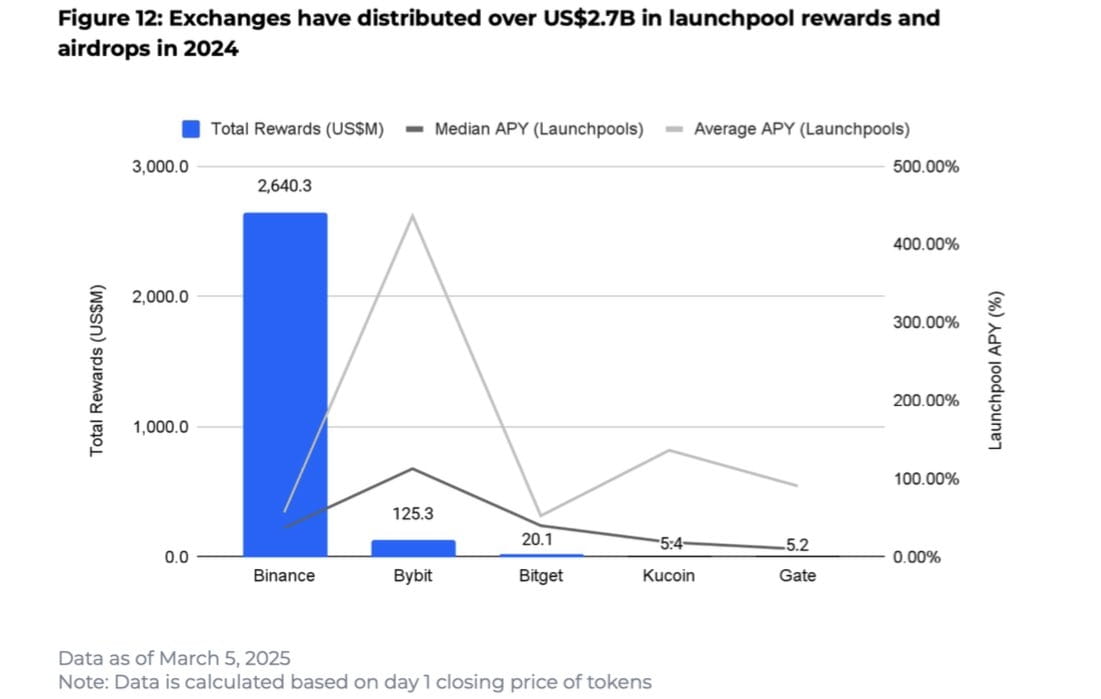Ponadto uczestnicy launchpool na głównych giełdach zanotowali zdumiewające zwroty, zwiększając atrakcyjność programu. CoinMarketCap podkreślił, że mediana średniego procentowego zwrotu (APY) użytkowników wahała się między 11% a 112%.