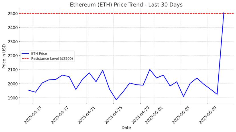 #ETHCrossed2500 11 maja 2025 — Ethereum (ETH), druga co do wielkości kryptowaluta pod względem kapitalizacji rynkowej, oficjalnie przekroczyło krytyczny poziom oporu $2,500, wywołując falę optymizmu na rynku aktywów cyfrowych. To oznacza kluczowy psychologiczny i techniczny kamień milowy, napędzając spekulacje, że może rozpocząć się szerszy trend wzrostowy.