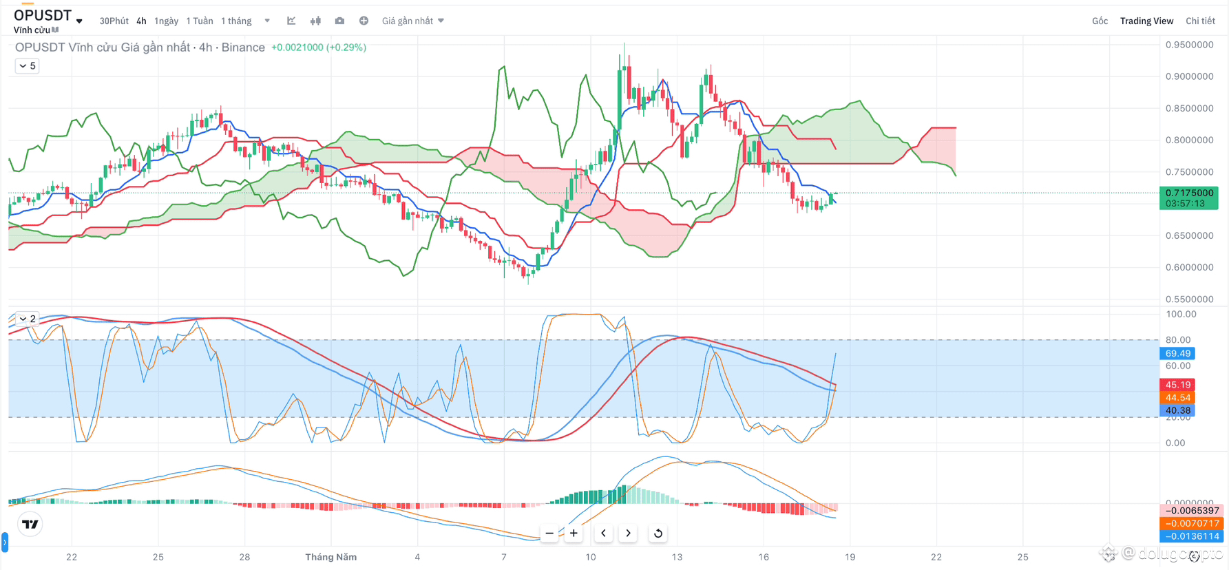 Dù vẫn còn nhiều rào cản kỹ thuật, nhưng các tín hiệu phục hồi đang dần hình thành, đặc biệt là khi kết hợp giữa Stochastic RSI và MACD. Nếu OPUSDT có thể vượt qua mây Ichimoku trong vài phiên tới, một pha tăng giá mới sẽ được xác lập.