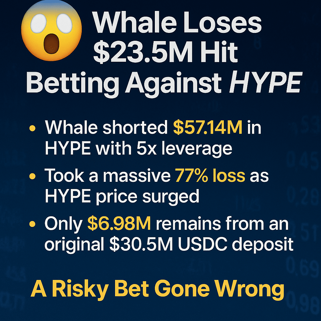 W odważnym ruchu, który poszedł źle, wieloryb kryptowalutowy właśnie poniósł ogromną stratę w wysokości 23,52 mln USD po zrealizowaniu krótkiej pozycji na gorącym tokenie $HYPE 🐳📉. Transakcja, warta 57,14 mln USD przy dźwigni 5x, została zamknięta po 23 bolesnych dniach narastających strat.