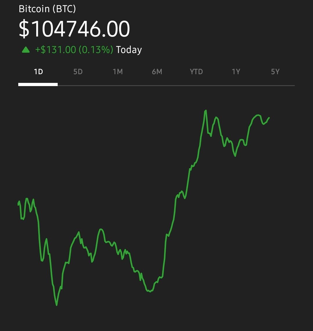 Na dzień 1 czerwca 2025 roku Bitcoin jest notowany na poziomie około 104 746 USD, doświadczając niewielkiego wzrostu o 0,00125% w porównaniu do poprzedniego zamknięcia. Maksimum i minimum w ciągu dnia wynoszą odpowiednio 104 850 USD i 103 289 USD.