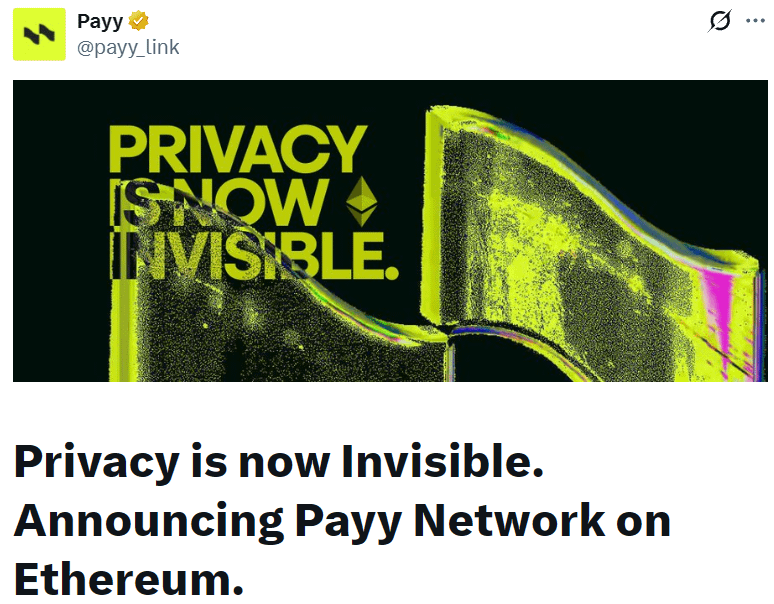 Sieć EVM L2 Payy dla prywatności Ethereum została oficjalnie uruchomiona.