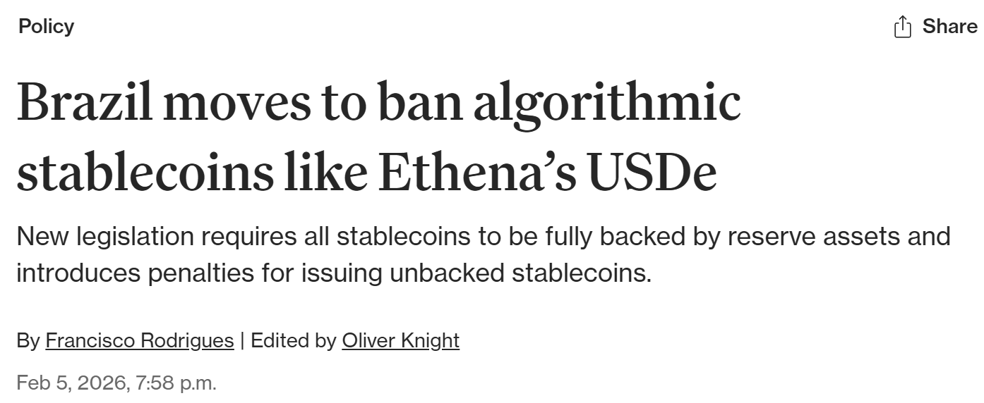 Ustawa zakazująca stablecoinów algorytmicznych takich jak USDe Ethena w Brazylii została przyjęta przez komisję.