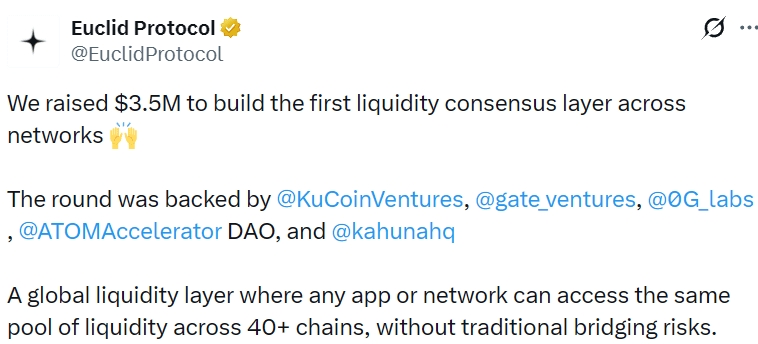 Warstwa konsensusu interoperacyjnej płynności Euclid Protocol zakończyła rundę seed w wysokości 3,5 miliona dolarów oraz rozszerzenie finansowania tej rundy.