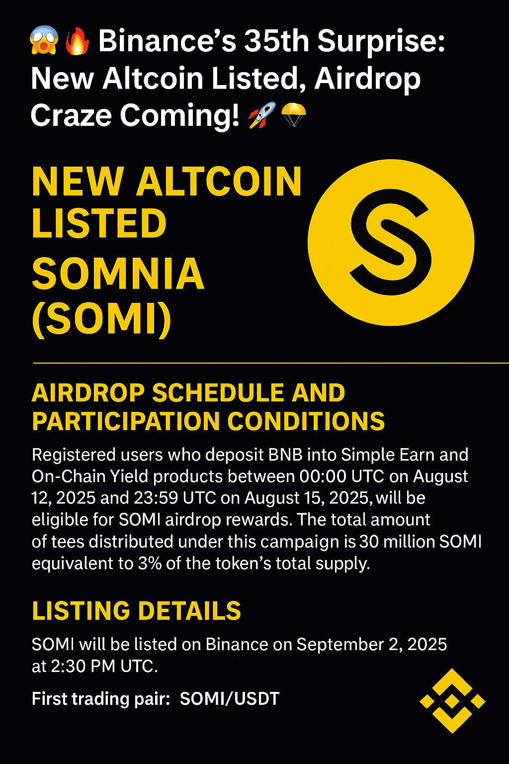 😱🔥 35. Niespodzianka Binance: Somnia (SOMI) dołącza do szaleństwa airdropów! 🚀🪂