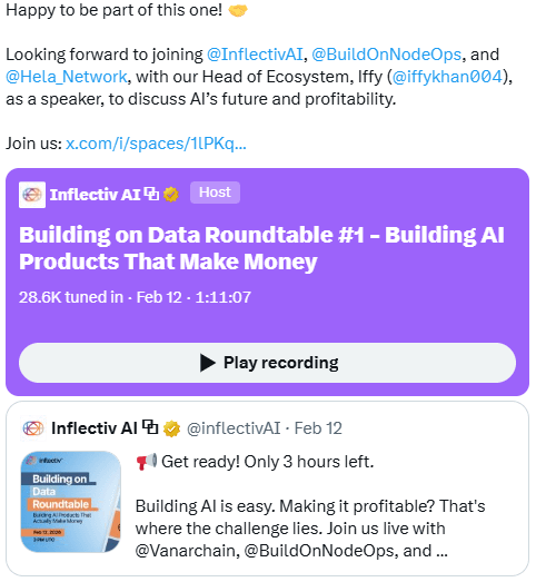Vanar dołączył do Inflectiv, NodeOps i Hela Network, aby omówić komercyjną przyszłość AI, podkreślając, że inteligentne systemy muszą przekształcać się w rzeczywiste modele ekonomiczne.