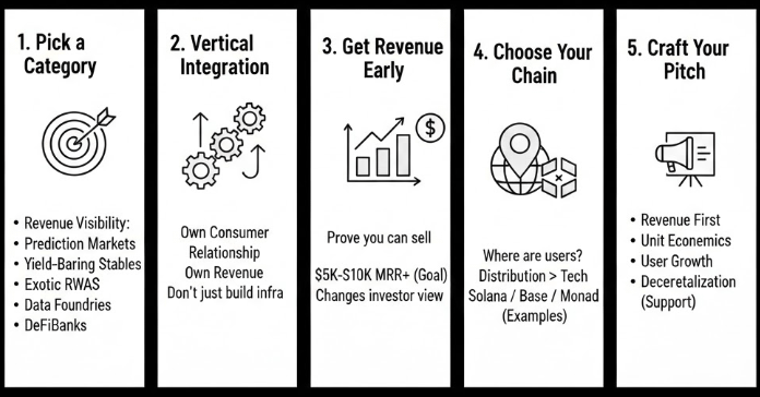 Wybierz udowodnioną kategorię z widocznością przychodu - rynki prognoz, stabilne monety przynoszące zyski, rynki kapitałowe Internetu, infrastruktura DeFAI, egzotyczne RWAs, fabryki danych lub DefiBanks.