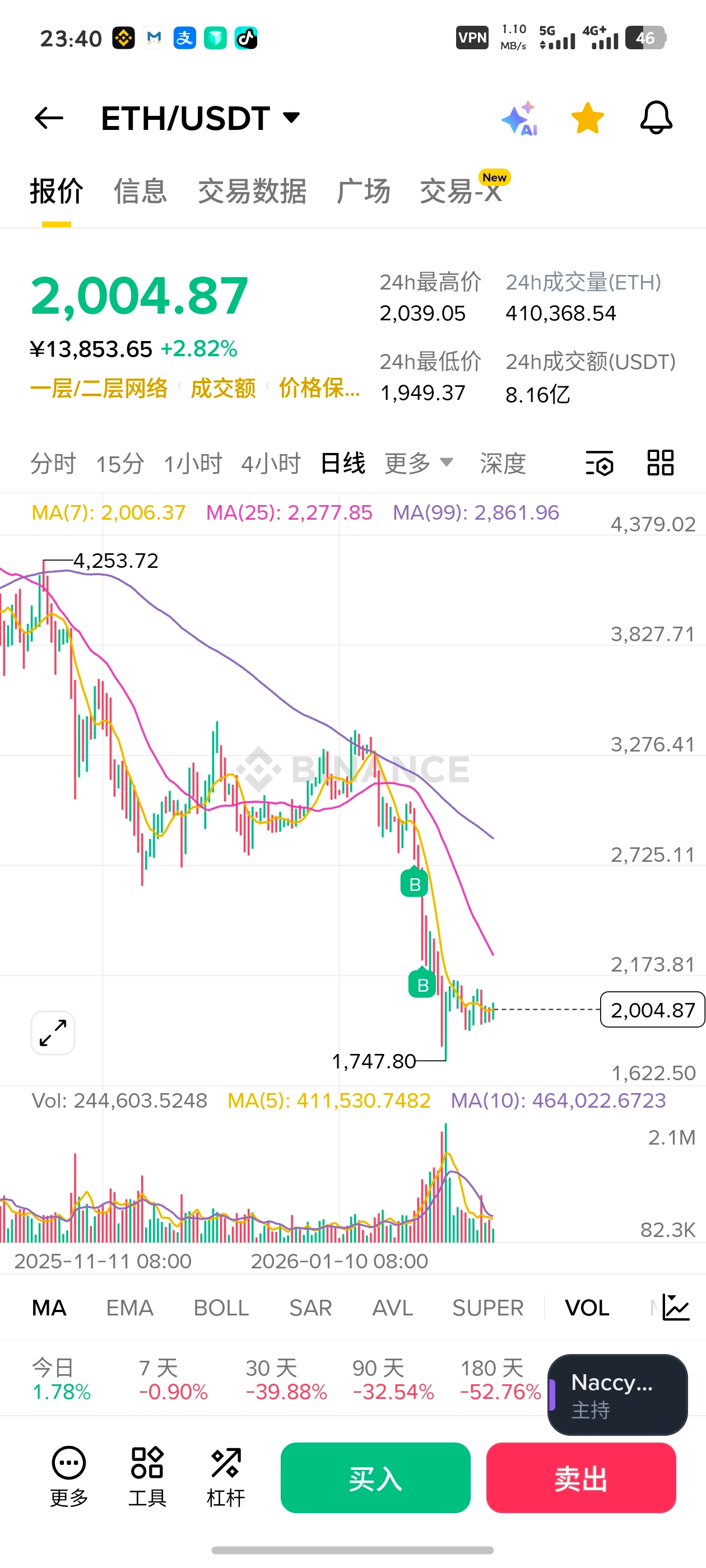 最近ETH的走势真的很有意思,涨一点又跌回来,看起来要启动,却始终不给一个明确方向。这样的行情,不是单纯的上涨或下跌,更像是在反复试探我们的耐心。