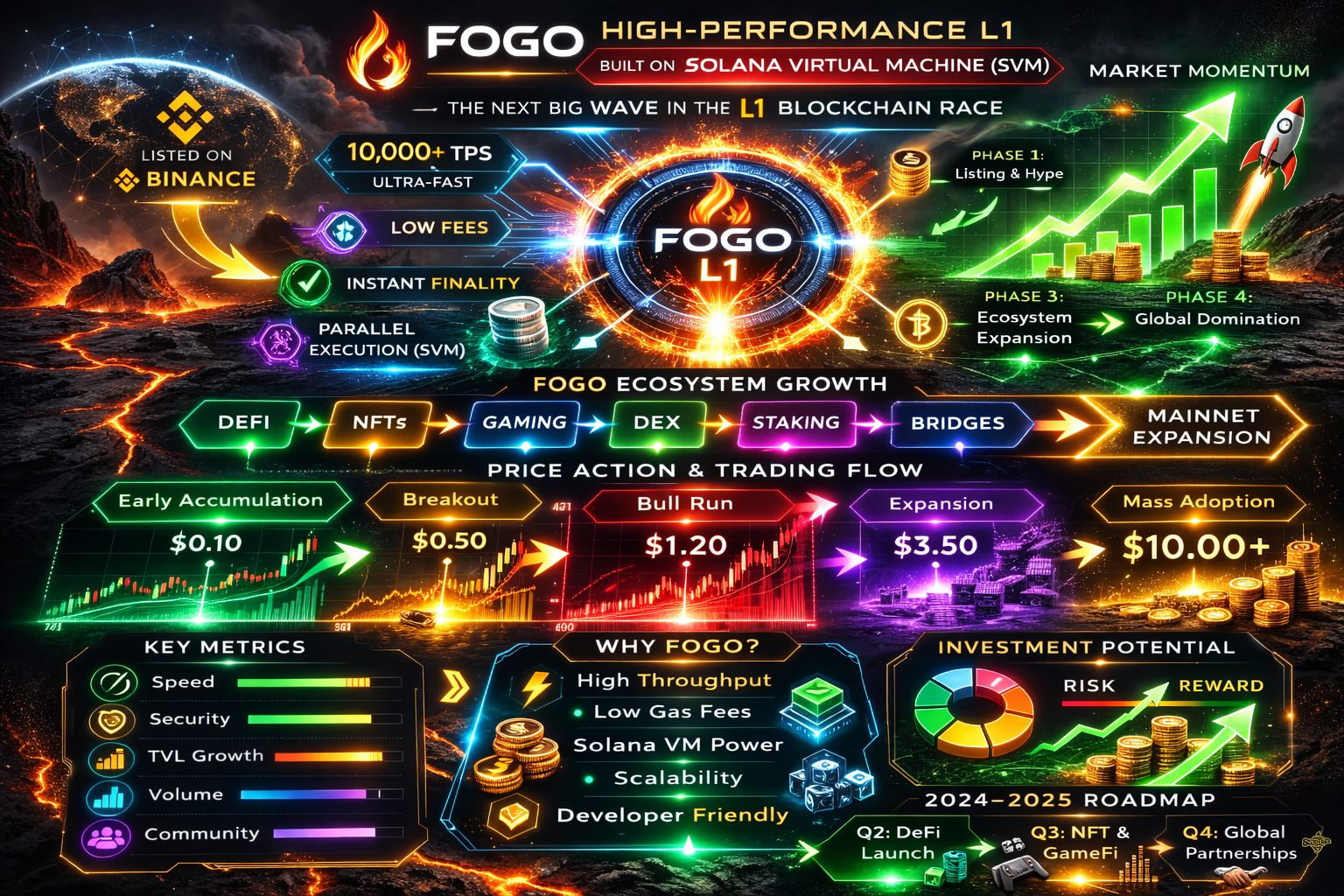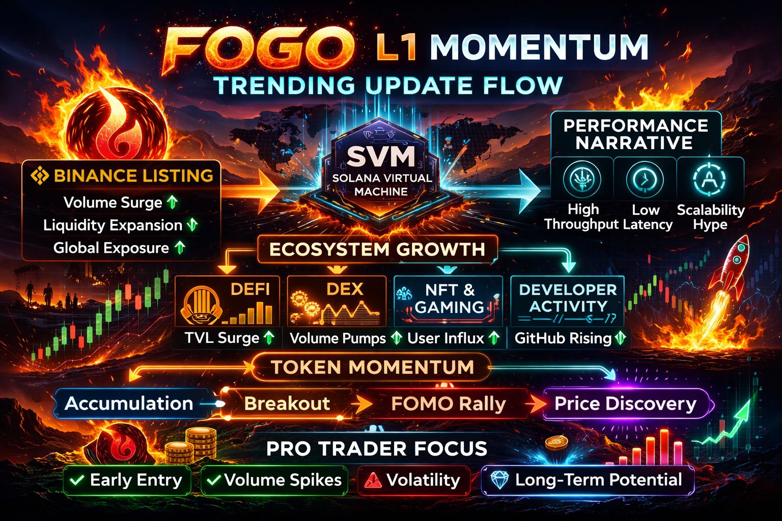 Fogo enters this landscape with a singular message: speed, throughput, and deterministic execution are the pillars of modern crypto finance. For Binance traders, this narrative matters. Binance listings are not given lightly, and the exchange’s ecosystem often amplifies coins that can sustain active on-chain environments. A high-performance Layer-1 using SVM architecture inherently attracts DeFi builders, high-frequency protocols, and market makers seeking predictable latency.
