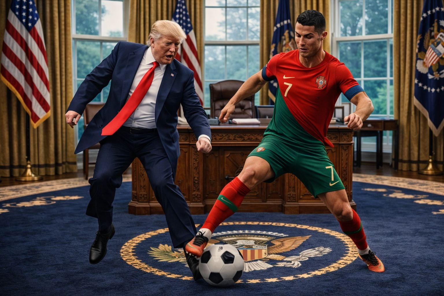 🎬 الفيديو تضمن مشاهد مولدة بالكامل بالذكاء الاصطناعي تظهر ترامب ورونالدو يلعبان كرة القدم داخل المكتب البيضاوي ⚽🏛️