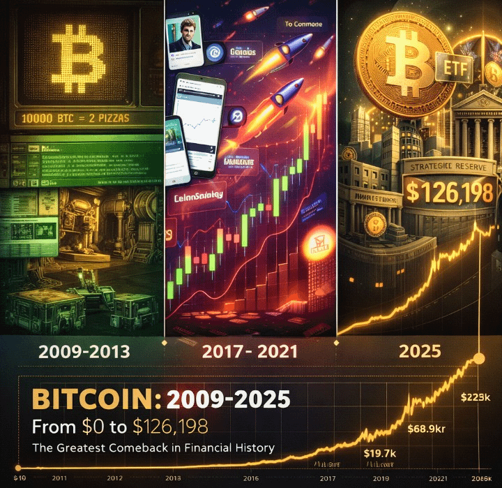 🚀 Epicka podróż Bitcoina: Od $0 do $126K+ 📈