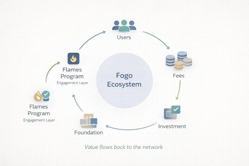 Fogo’s incentive ecosystem encourages usage: staking, bridging, liquidity provision, and application building. Programs like Flames and Flywheel reward contribution and ecosystem growth rather than passive speculation. This fosters a user base invested in network success beyond short-term price movements.