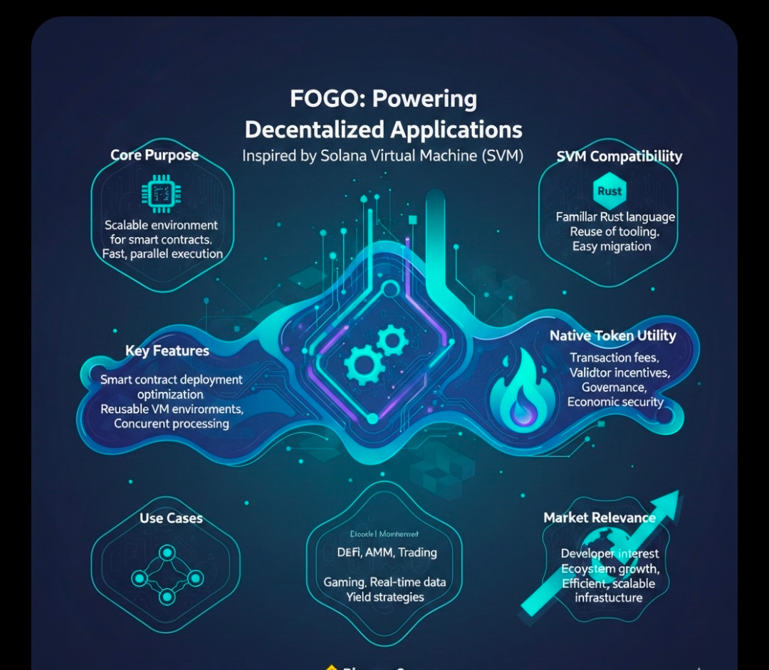 @Fogo Official Fogo operates within a blockchain ecosystem that draws on principles of parallel transaction processing and efficient resource management. By reusing SVM design concepts, the network enables developers to deploy contracts using familiar languages such as Rust, with an emphasis on compatibility and tooling reuse. This makes it easier for software teams to build and scale applications without extensive rewrites or learning new frameworks. The ecosystem’s focus on execution performance positions it as a viable option for decentralized finance protocols, automated market makers, on-chain trading systems, and performance-sensitive applications such as gaming and real-time data processing.